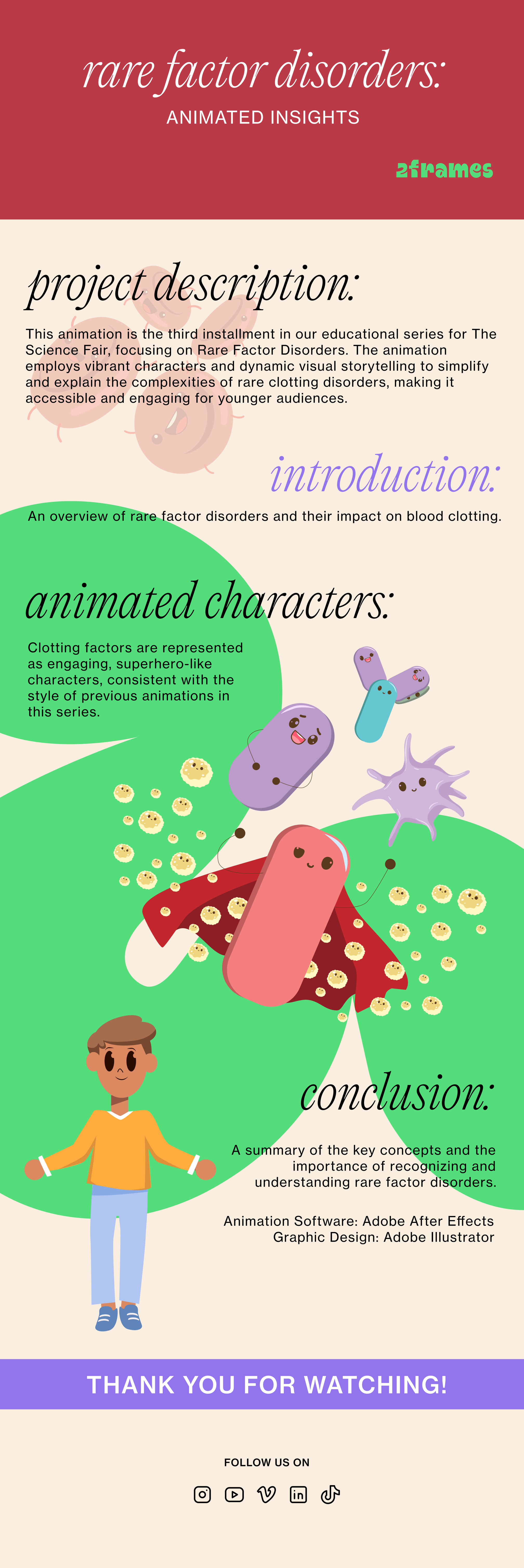 An informative 2D animation focusing on rare bleeding disorders, combining scientific accuracy with creative visuals. Ideal for those in need of scientific animation services and educational video production.